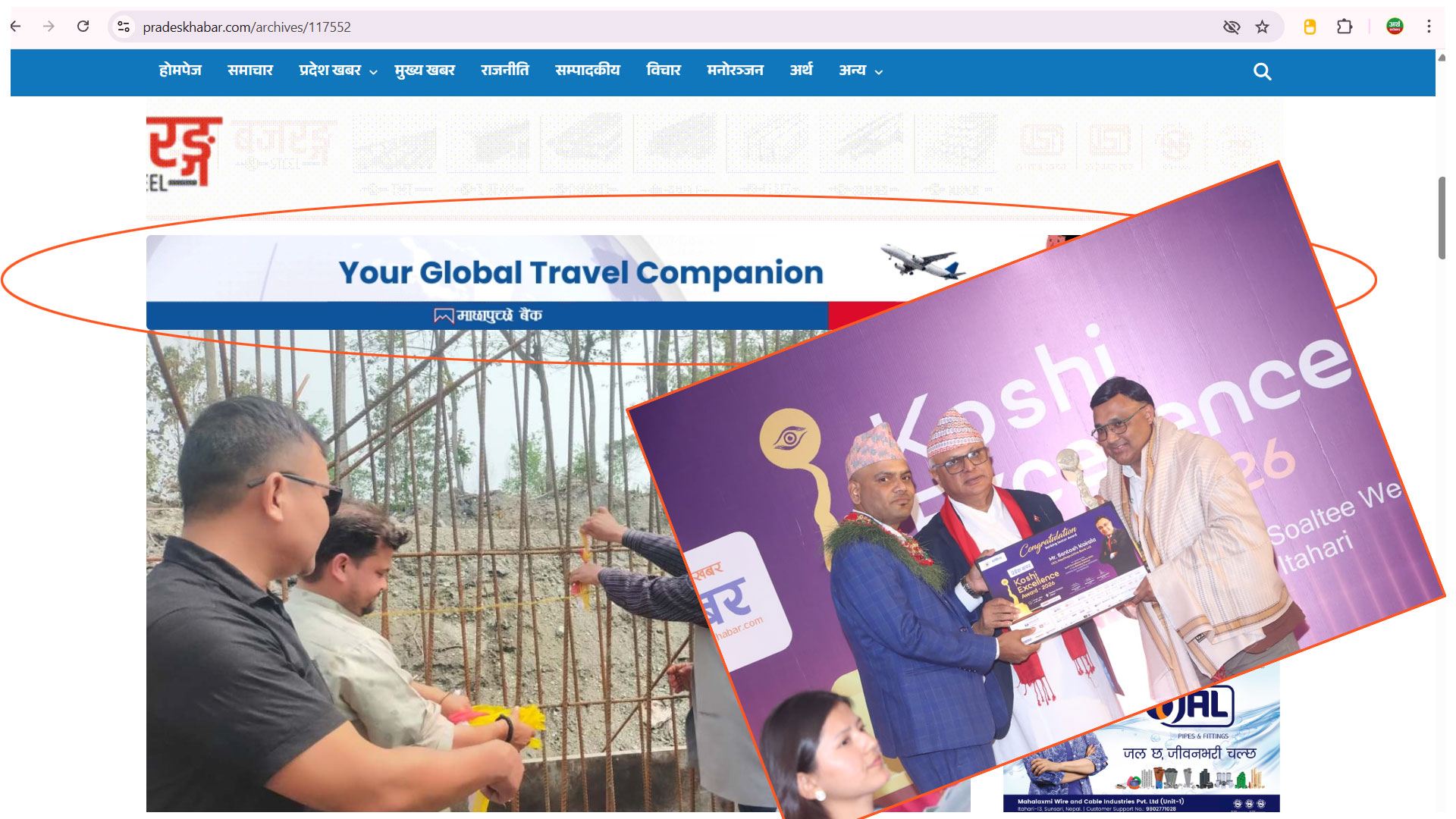 माछापुच्छ्रे बैंकसँग विज्ञापन कारोबार गर्ने संस्थाको आयोजनामा भएको कोशी एक्सीलेन्सी अवार्ड बैंककै सीइओ कोइरालालाई