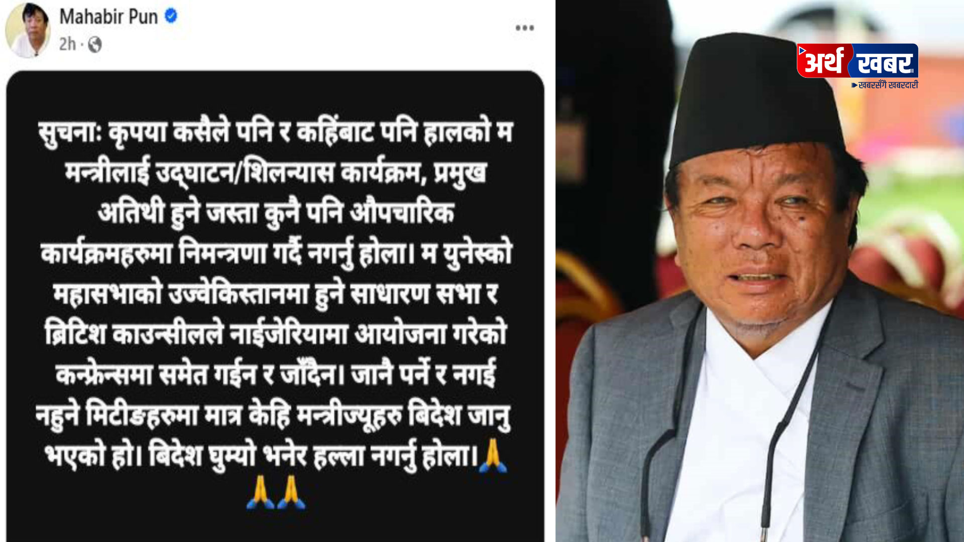 उद्घाटन वा शिलन्यासमा जस्ता कार्यक्रमहरूमा नबाेलाउन मन्त्री पुनकाे आग्रह