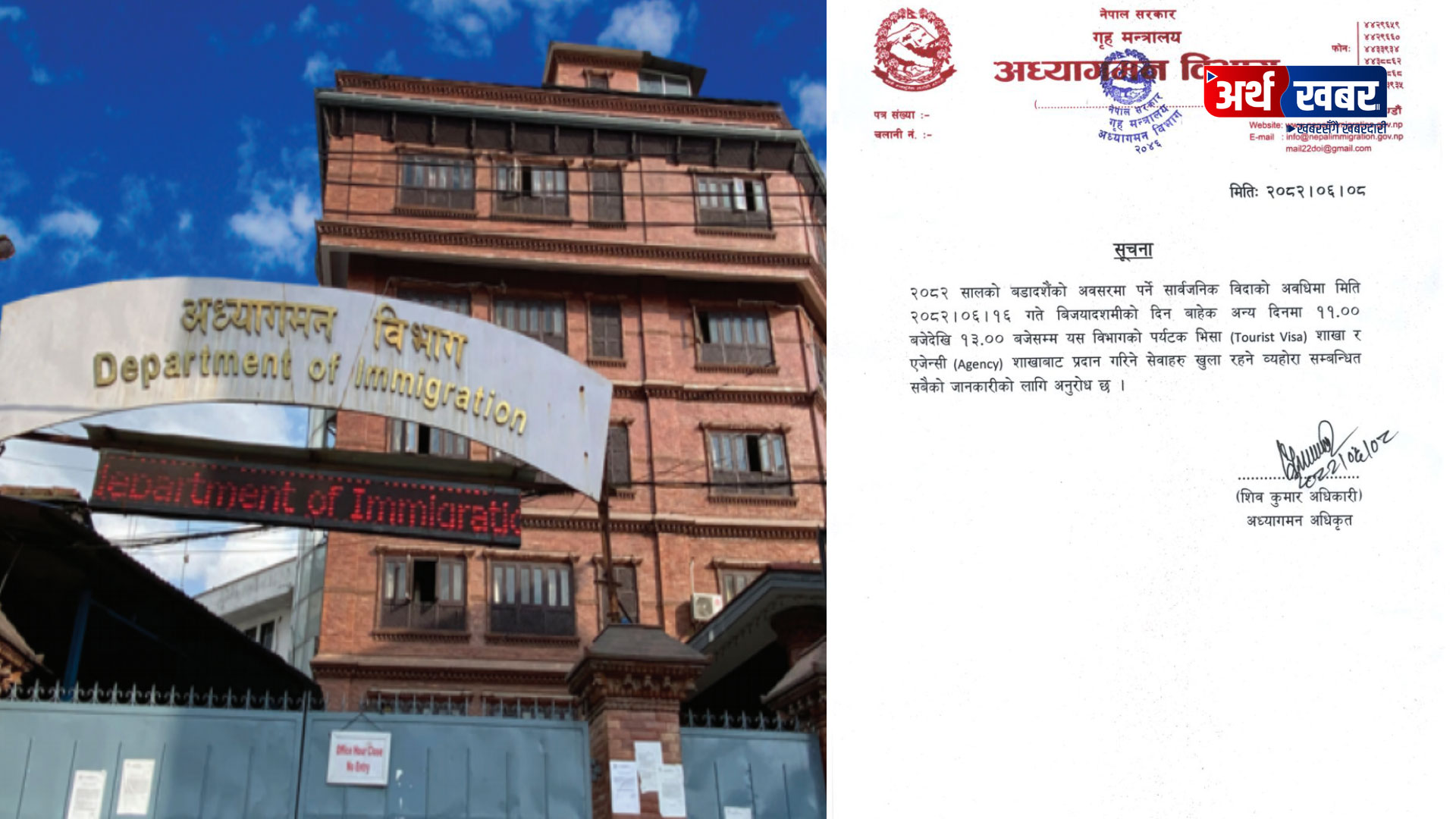 अध्यागमन विभागले दसैँको दिनबाहेक अन्य दिन सेवा जारी राख्ने